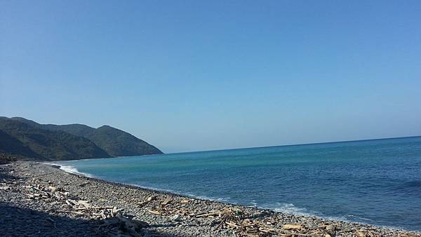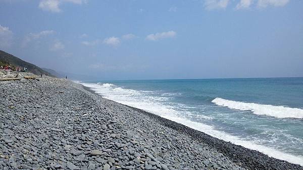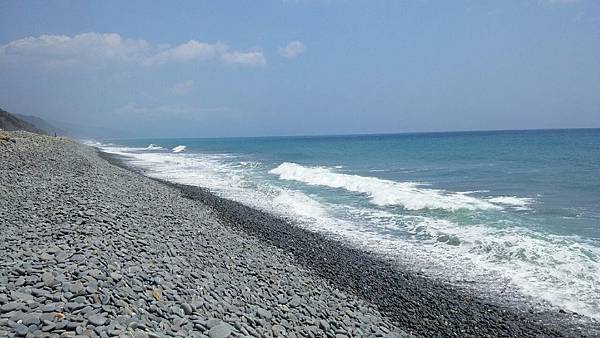 阿塱壹古道粗獷原始,有著未經人工斧鑿的自然美,這裡平日無人煙過往,沒有車水馬龍,有的只是令人目眩神迷的海天一色,這裡看到的太平洋像是一塊有著漸層顏色的畫布,從淡淡的藍到淺藍、深藍、更深的藍....無邊無際,美的難以置信。視野的延伸是一條美得難以形容的原始海岸線,漲潮,滔滔波浪,深藍色的黑潮曲線退到較遠的東方,西邊是常綠的椰樹、林投、海岸灌叢林,藍與綠的交會地帶是灰,一顆顆經過浪潮、風雨所打磨的圓滑鵝卵石,以最完美的堆疊方式,形成天然的海岸屏障。每當海浪拍打岸邊時,鵝卵石相互撞擊滾動,發出咕隆!咕隆的美妙音響,我們坐在岸邊,豎起耳朵聆聽那迷人的海浪與鵝卵石協奏曲,那是天籟啊!都聽得上癮了呢!