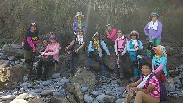 今天的行程是我們期待已久的阿塱壹古道,之前曾聽朋友形容古道之美但路難走,咱們今天就來挑戰一下。但畢竟年歲漸漸增長,很多姐妹們的腳關節都陸續出現問題,不是無法走遠程就是怕走階梯,因此要參加的隊友都必需經過趙領隊認可,要能耐磨耐操的才可報名,所以此行的36人都屬勇腳隊,今天磨拳擦掌準備一探這條充滿歷史傳奇,美麗與哀愁並存的阿塱壹古道。