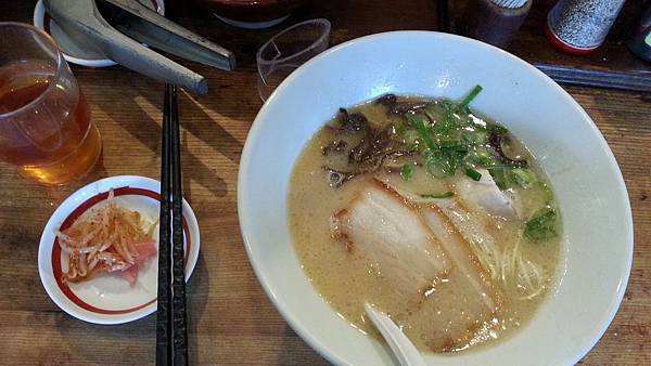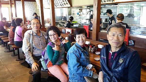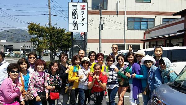班機於日本時間12:20分左右抵達福岡,台灣與日本有一小時的時差,到九州的第一件大事就是先祭飽五臟廟。遊覽車司機高田先生,導遊〝坦克〞將我們帶到『一風堂』拉麵店大快朵頤一番。久聞九州的〝博多豚骨拉麵〞美味可口,湯頭濃郁,搭配易吸收湯汁的細麵、加上义燒肉、木耳絲、灑上一把蔥花、、筍絲和海苔等配料,再加上一盤煎餃,九州必嚐美食的風味,徹底滿足了大夥兒的口腹之慾。