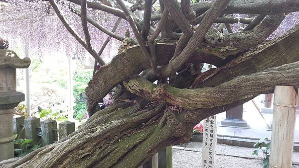在日本,紫藤代表高貴,他們喜歡在神社或寺廟前栽種紫藤,每當五顏六色的紫藤花開時,寺廟前更添繽紛絢麗的色彩,遊客來賞花之餘也可順便進神社參拜。河內紫藤園位於北九州市八幡區的山裡面,是網路上公認一生必去的一處紫藤隧道景觀,由於這裡的緯度較高,氣溫較低,開花期也比較晚,很可惜這次我們來早了,有些花只開三成,沒有看到滿開的盛况,大家難掩失望的神情!