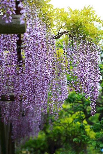 每年晚春初夏時候,正是紫藤花開的季節,從高處垂墜而下的串串紫藤花穗,宛若紫色的蝴蝶翩翩飛舞,不但吸引了狂蜂浪蝶,更讓一群愛花人不遠千里飛撲而來;來欣賞藤蔓隨風搖曳的風姿、沐浴在浪漫花瓣雨下、和體驗李白詩中『紫藤掛雲木,花蔓宜陽春;密葉隱歌鳥,香風留美人』那如詩如畫般的意境。