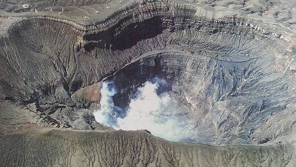 沉睡中的阿蘇火山口,翻拍自火山博物館