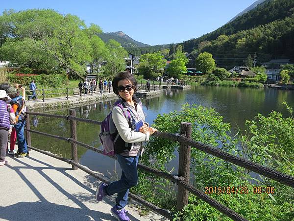 『金鱗湖』位於九州大分縣中部的『由布院』溫泉區,導遊說這一區也可稱為『湯布院』。由布院溫泉是全日本最受歡迎的溫泉勝地之一,泉質無色無味,可飲用,據說有治療腸胃疾病的功效,更可幫助調整體質,而金鱗湖則是由布院地區的馳名地標。金鱗湖原名『岳下池』,因湖中魚兒躍出水面時,陽光照射下鱗光粼粼如黃金般閃爍因而得名。清晨的金鱗湖最美,湖面雲霧冉冉而升,景色如夢似幻,霧散後,湖面上清晰的倒影也是金鱗湖的招牌美景。
