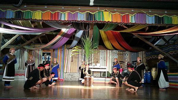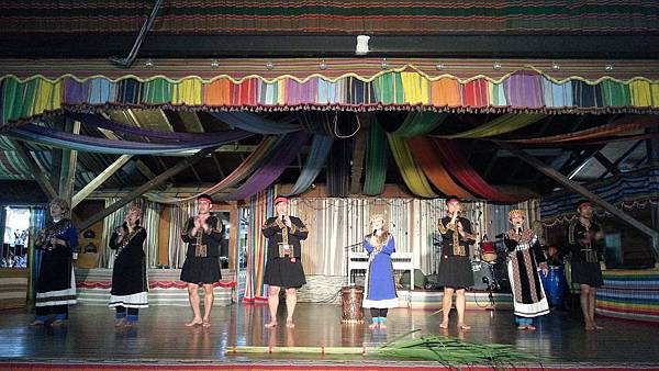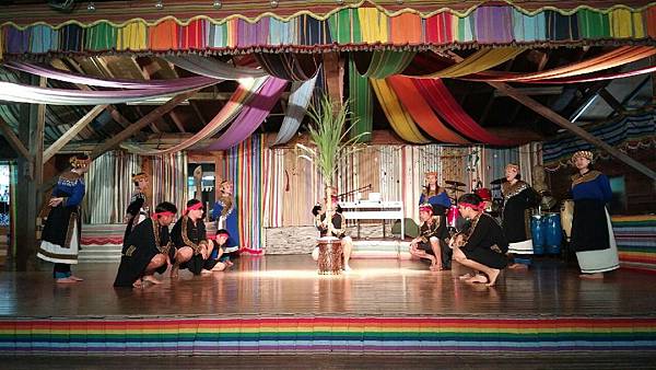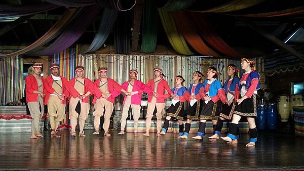 午餐後移步到布農劇場觀賞園區內每天定時的歌舞表演。由布農族老青少所演出的祭祀儀式及創作歌曲和舞蹈節目中,每一段展演皆蘊含著原住民的習俗和傳統文化,尤其是優美的布農族八部合音,它是一種多聲部合音唱法,從低音漸漸轉高音,一直唱到最高音域的和諧音,讓聽者有行雲流水的美好感受。八部合音其實是布農族以美妙的和聲來娛悅天神以祈求小米豐收的樂曲,這也是目前世界上獨一無二的和音方式。1996年曾被選為奥運會主題曲,堪稱是世界音樂的瑰寶,布農族人的光榮。部落劇場還曾受邀至美加及日本等地演出,深受好評,今天能在午餐後欣賞到他們的表演,實感榮幸。