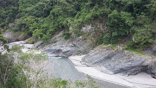揮別了安靜的紅葉村,車行3公里抵達清水大橋,橋下是鹿野溪,每逢雨季,湍急的溪水長年沖蝕兩岸,形成壯觀的峽谷風光~龍門峽谷。龍門峽谷長1500公尺,位於鹿野溪中游,峽谷中峭壁高聳,豐水期可常見激流和飛瀑,陡峭的石壁上一片翠綠的植被,清澈見底的溪水清悠悠地流淌,依山傍水景致相當宜人。站立清水大橋上,俯瞰壯闊迷人的峽谷美景,遠嶺淺溪盡收眼底,加上陣陣山風吹拂,舒暢感頓上心頭。