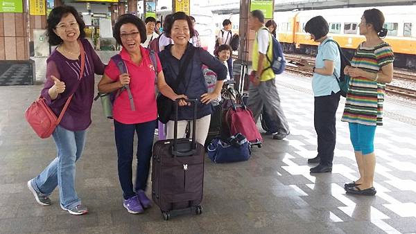 早上6:50分,在台北車站集合,搭乘7:20分普悠瑪前往花蓮,因為票難買,買到的是分段票,先到花蓮再轉另一班火車前往關山,但萬萬沒想到卻在轉車時出了狀況~何磊和阿彬沒上車!這可急壞了趙領隊!幸好這兩位天兵最後改搭下一班車到關山與我們會合,延誤了20分鐘。他倆沒搭上車的原因也很好笑,一個是看小娃娃看得着迷忘了上車,另一位是去丟衛生紙,待回頭一看,火車走了!難道不曉得火車是不會等人的嗎?這下子真急壞了趙領隊,後來這件事常被當成大家茶餘飯後的笑話。