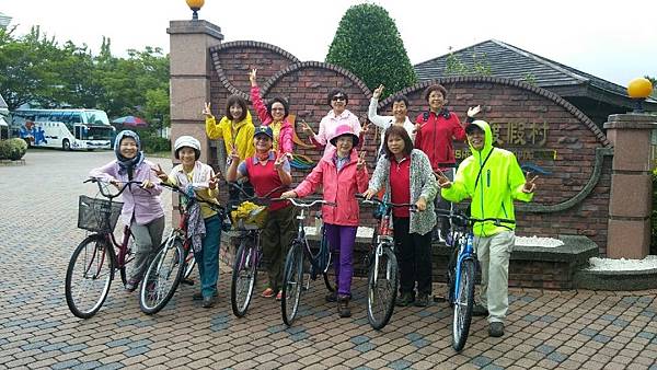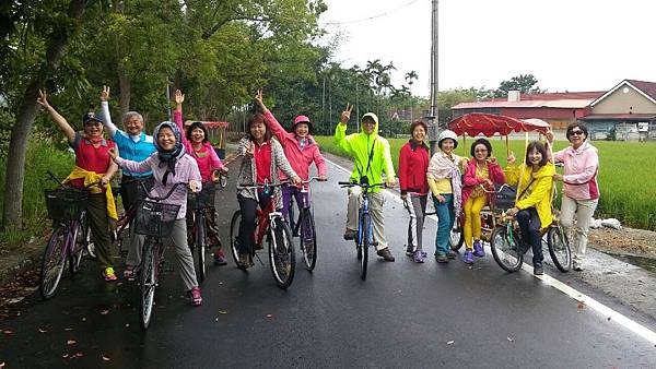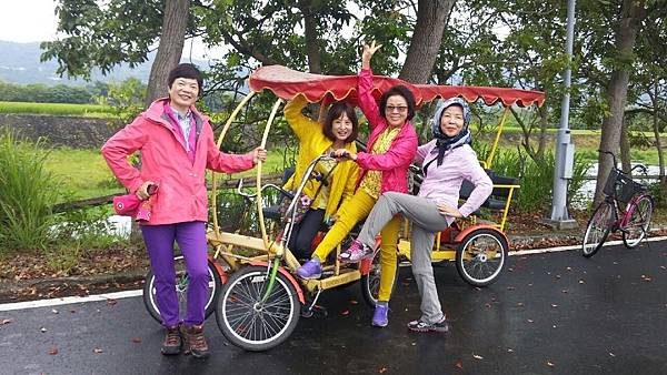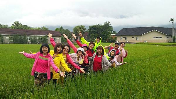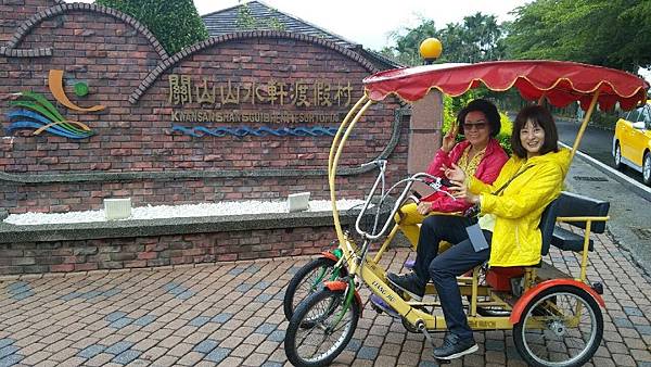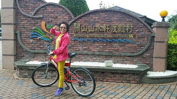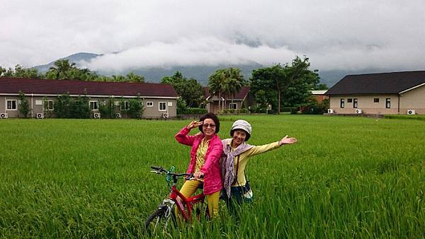 台東關山親水公園對面的「山水軒渡假村」是我們昨晚住宿的地方,全台第一條環鎮自行車道起點就在渡假村的大門口,圍繞著渡假村的是大面積綠油油的稻田,背景是壯闊的山脈、在如此優美的景色中騎單車最愜意了,何况山水軒備有自行車出借,所以今天大家都特地早起、在霏霏細雨中仍然興致勃勃地奔馳在田野中。