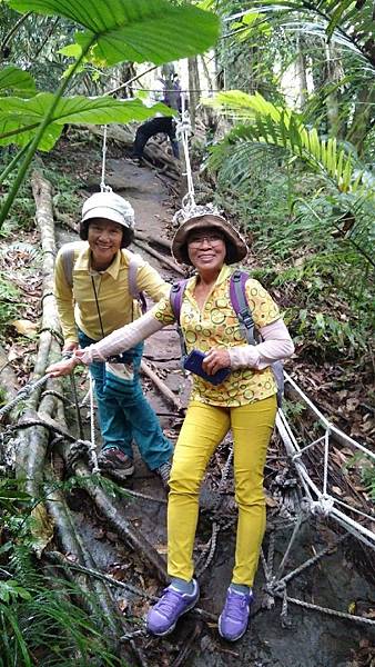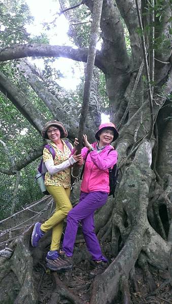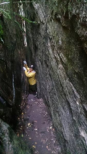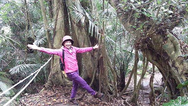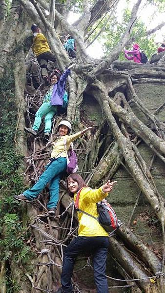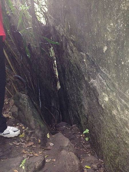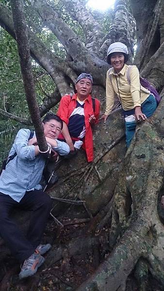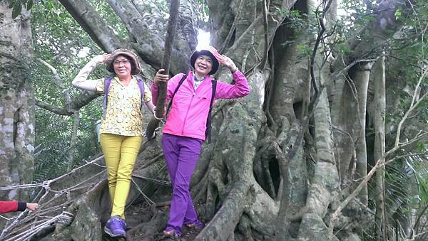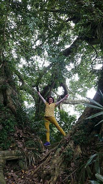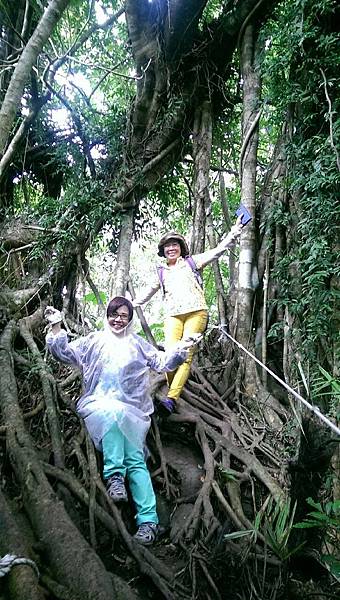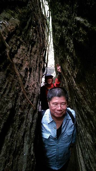 森林的空氣中瀰漫著山棕花的香味,行走在林中,百年的榕樹像巨人一般伸展著手臂,也像一隻大腳踩在森林的大地上任由我們倚靠著,而樹根和岩壁、岩縫所形成的「一線天」更是趣味性十足。峽窄的岩縫一次僅能容一人穿越,微胖的隊友縮腹穿越夾縫時險被卡住進退兩難的糗境,也成為一時的笑話。