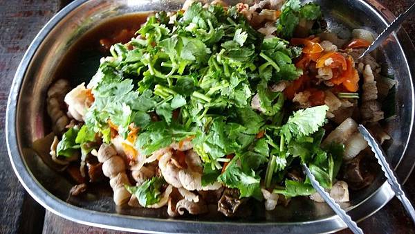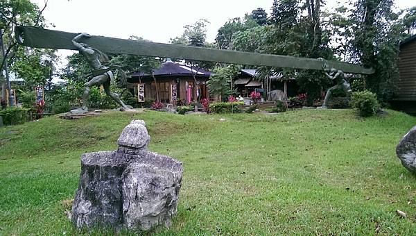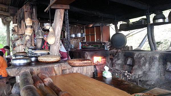 順著小徑回到傳統的原住民布農族木屋用餐區,這裡的斜坡上共建了三棟木屋,我們被安排在最上層的木屋用餐,但遠遠地就已經可以嗅到菜餚的香味了。