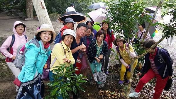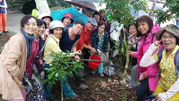 告別森林博物館前,阿力曼和大家同心協力種下一棵樹,從選地、挖土、整地到種下一株七里香樹苗,然後每人撿拾一把落葉放在覆蓋的泥土上,提供小樹苗成長養份,趙領隊承諾他會每隔一段時間來探望這棵小樹並確認它生長良好,長大茁壯。