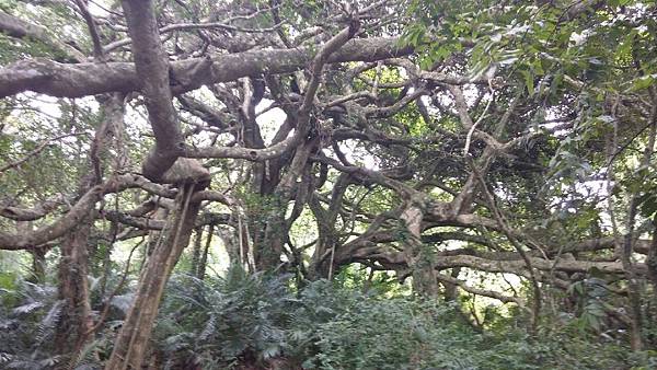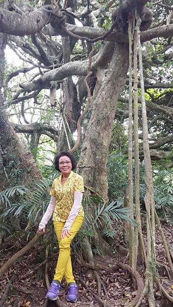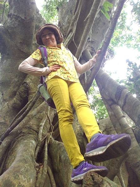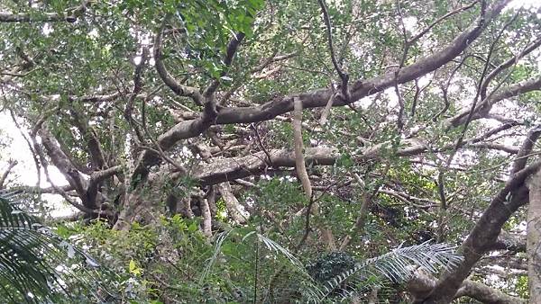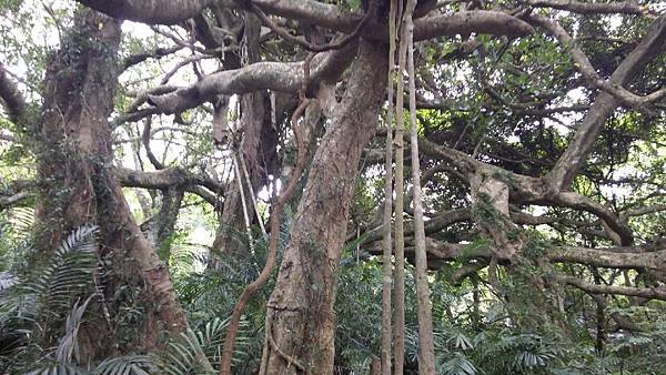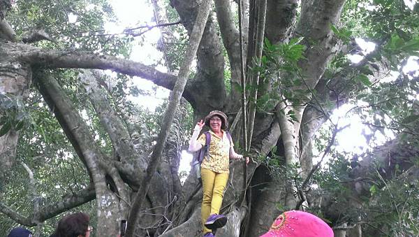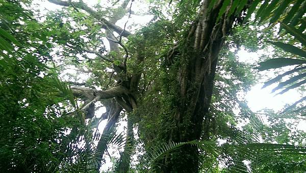 進入森林時就好比一腳踩進魔戒的氛圍中,幽深的森林,擎天的大樹,眼前磅礡的榕樹群讓人感到震撼,好壯觀的白榕樹啊!幾乎把天空完全遮蔽了,茂密、蜿蜒、錯綜複雜、枝梢末節如巨蛇般糾結纏繞、每一株氣根都粗壯飽滿,蒼勁有力,相信除了部落年長耆老,誰也分不清哪一株是母樹哪一株是子樹了。老師向我們訴說著族人對這片森林的情感,籌錢借貸、如何與財團爭地等等,感性的我不禁濕了眼框,但他幽默的言詞瞬間又能讓人破涕為笑。忙著照相的同時,我努力地吐納著森林中的維他命,要以最美好的精神,最謙卑的態度來探索這片原始又美麗的森林博物館。