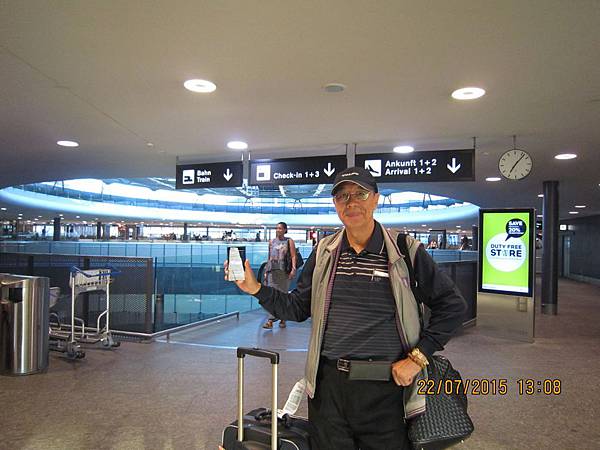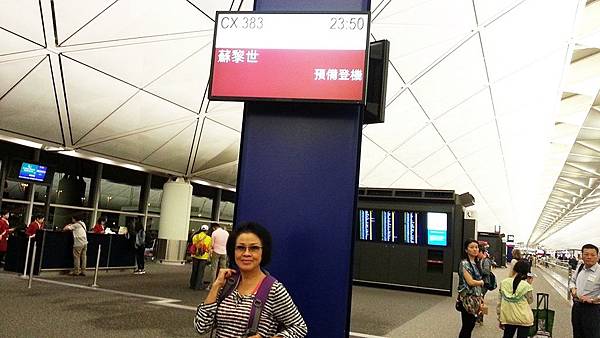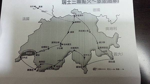 終於要出發了!傍晚6點集合於桃機一航,團員準時到齊,初次相見,陌生的名字,陌生的面孔,相同的是大家親切的笑容。當了兩年婦女聯誼會的會長,我習慣自動打招呼認識身邊的朋友,也相信和他(她) 們同行,將會是一趟快樂、圓滿和豐碩的旅程。搭乘國泰航班CX531於晚間8:05分飛香港,抵達香港後再轉CX383於晚間10:00點整直飛蘇黎世,飛行時間12小時。