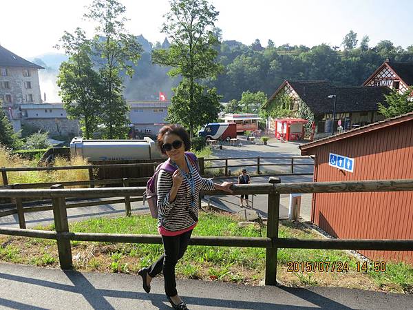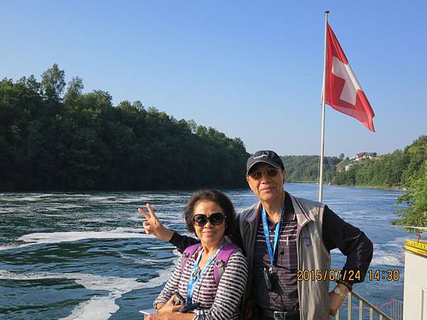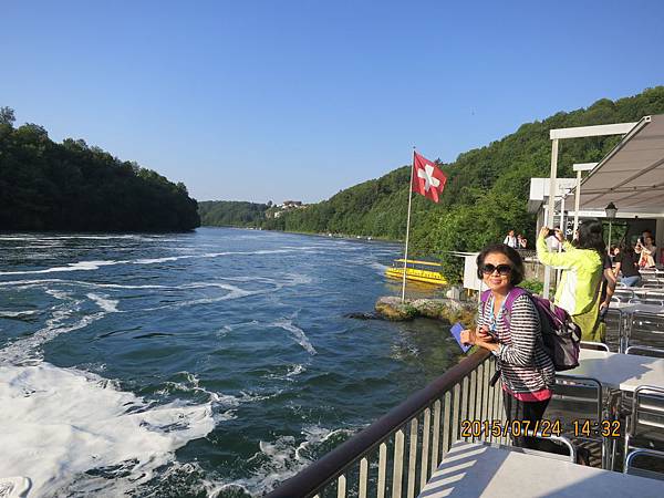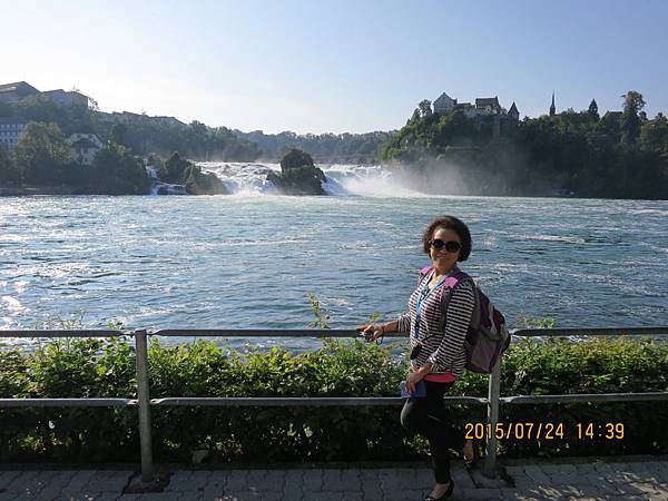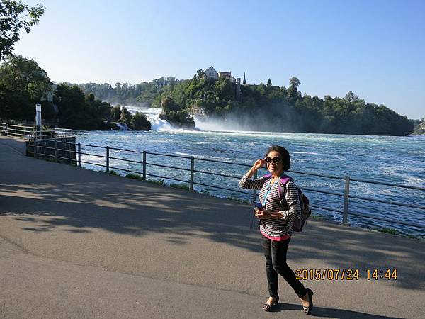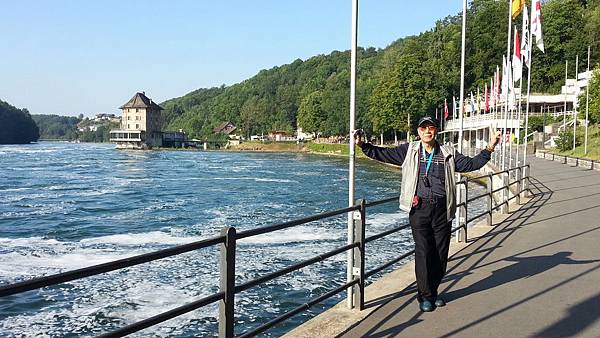 遊覽車平穩地馳騁在清晨的瑞士公路上一路往北走,一小時後抵達行程第一站~夏夫豪森(Schaffhausen). 它是座落在萊茵河岸的一個古都。萊茵河發源於阿爾卑斯山區,全長1,232公里,雪融化後的河水往西奔流,在夏夫豪森遇上斷層形成27公尺左右的落差,這就是我們要參觀的第一個景點~萊茵瀑布(Rhinefall)。