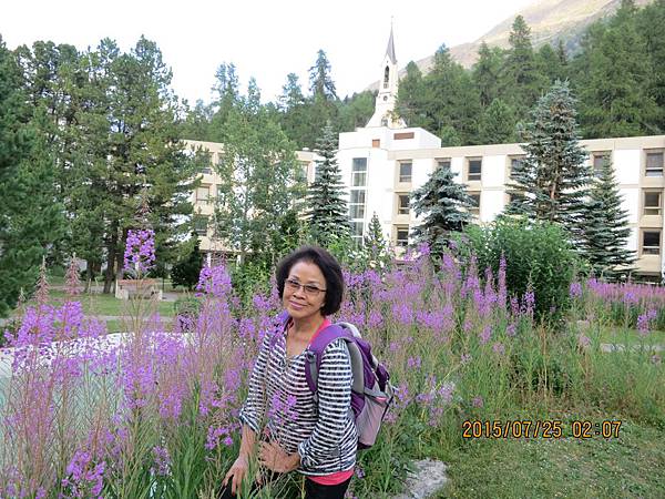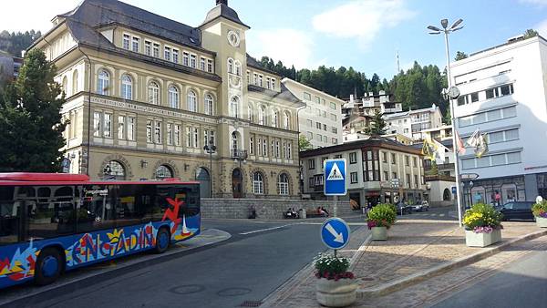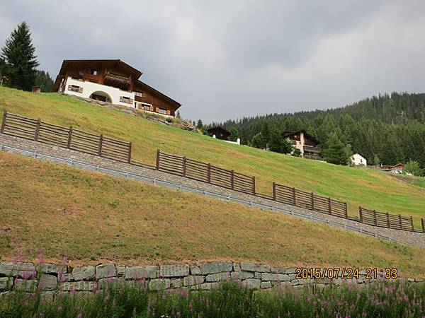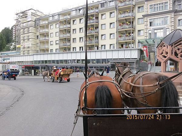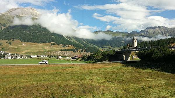 四十分鐘的馬車之旅後,回到Davos Dorf,已是下午4點,離開達沃斯,咱們前往聖模里茲(St.Moritz),車程2小時。往聖模里茲的路是一段相當長的山路,蜿蜒曲折,巍巍峨峨的群峰上仍有積雪未退,映襯著綠色山林,遼闊的草原和牧場,景色旑妮,引人入勝。