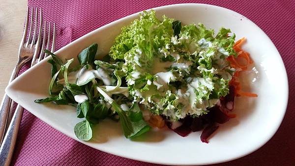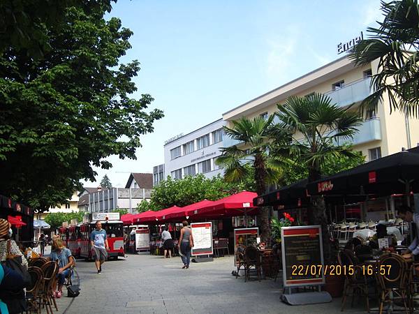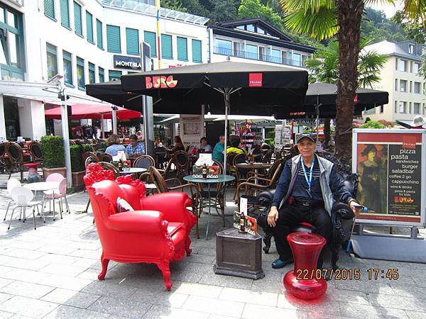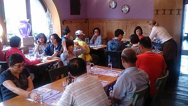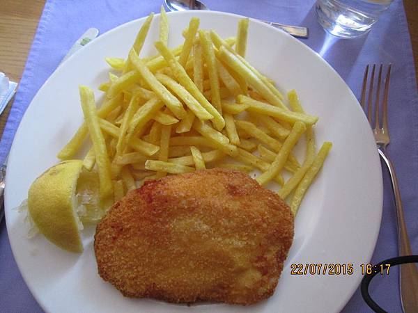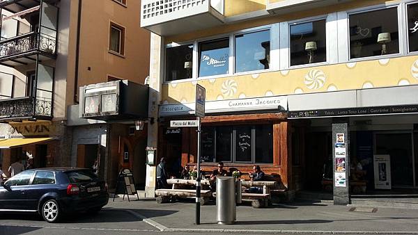 午餐就在大街上的Vanini餐廳。瑞士的第一餐是藍帶雞排風味餐加薯條,都是炸物,台灣人愛養生,所以這一餐不太受歡迎。