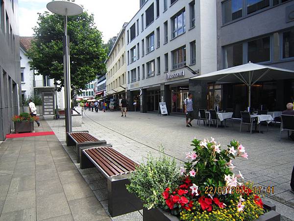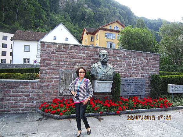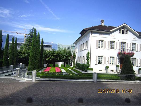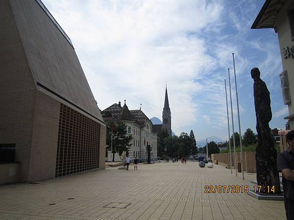 我們於10:40分抵達列支敦士登的首都瓦度士(Vaduz), 它是全國政治、經濟和文化的中心。城市很小,但坐擁群山環抱的盆地中,依傍在萊茵河河岸,景色份外迷人。這裏沒有大城市的喧囂,沒有水泥森林般的高樓大廈,卻流露出清新,寧靜,整潔,優雅的田園色彩;雖沒有一國之都的氣派,但卻是全世界生活水準最富裕的首都之一。