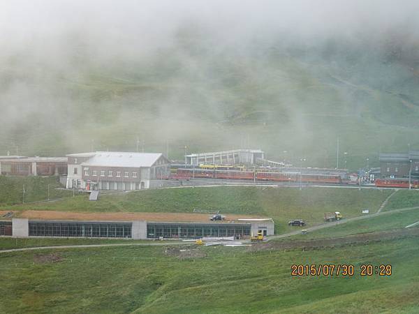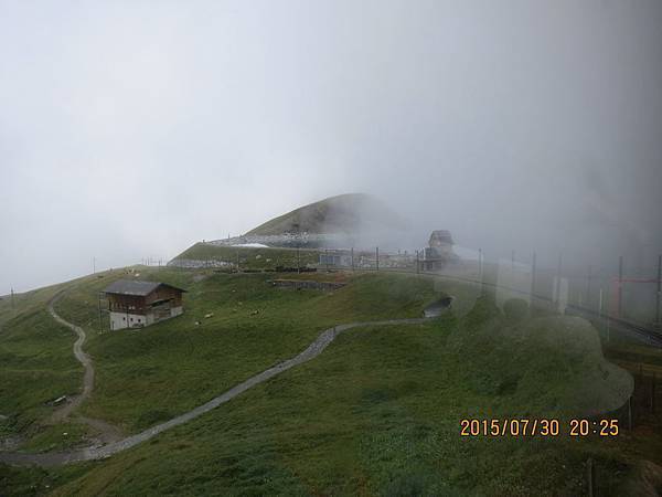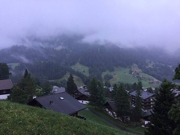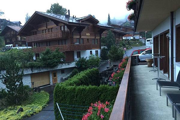 早晨的格林德瓦瀰漫著一股朦朧美的氛圍,昨天晚上的一場雨,讓山中的霧氣都還無法完全散開,天空還是灰蒙蒙的,這種天氣要上海拔3454公尺的少女峰站(Jungfraujoch)真是令人擔憂啊!山中的天氣變化萬千,就像娘要改嫁、老天要下雨一樣半點不由人,還是別想太多,趁早餐前先到戶外走走吧!