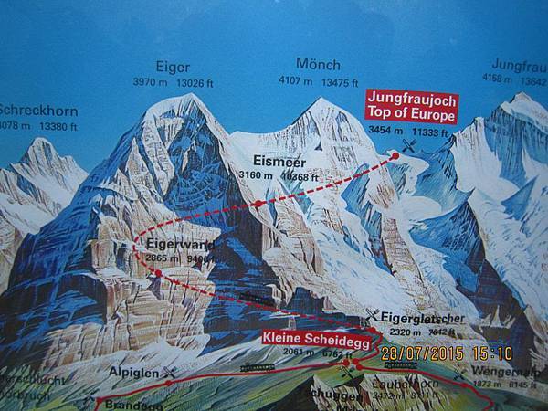 左上角是少女峰,海拔4158公尺