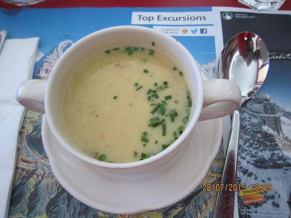 午餐在歐洲屋脊(Top Of Europe)冰河景觀餐廳享受烤雞風味餐料理,用餐的同時可欣賞戶外飛泄冰河與少女峰群山的迫人氣勢。