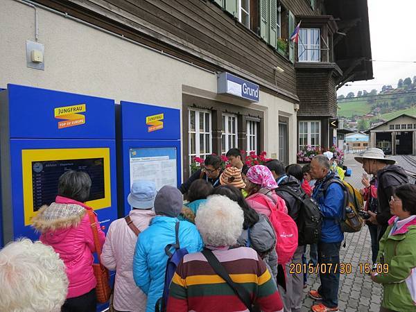 少女峰鐵路由山下Grindelwald /Grund開始,一開始時火車居然往下坡行駛,我一陣錯愕,原來Grund 地勢低窪,火車往下走3分鐘左右後才開始扶搖直上。列車有懷古風的車廂設計,椅子還是木製靠背的,窗戶可自由升降。火車蜿蜒經過艾格峰的草地,路旁綻放的小花,搖曳生姿,典型的木造房舍散佈在草地上,井然有序,風光旑妮。