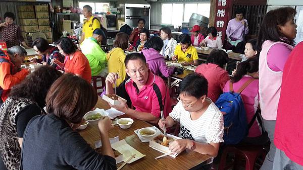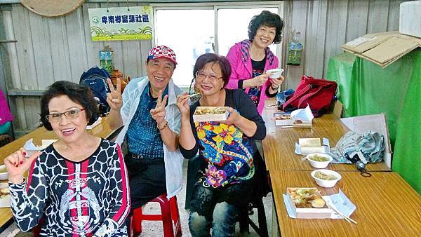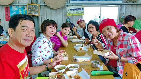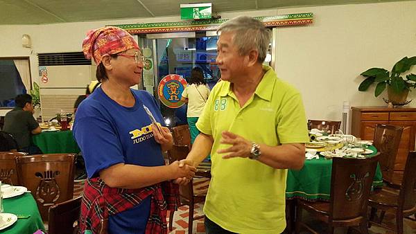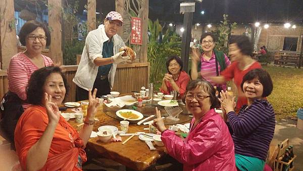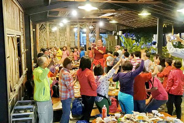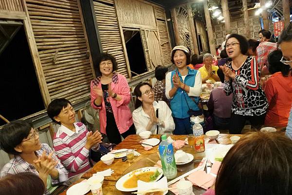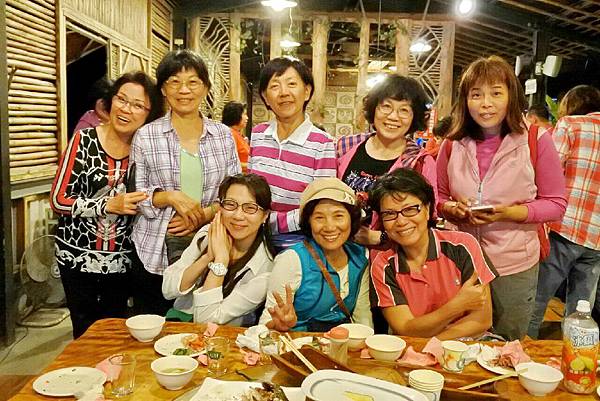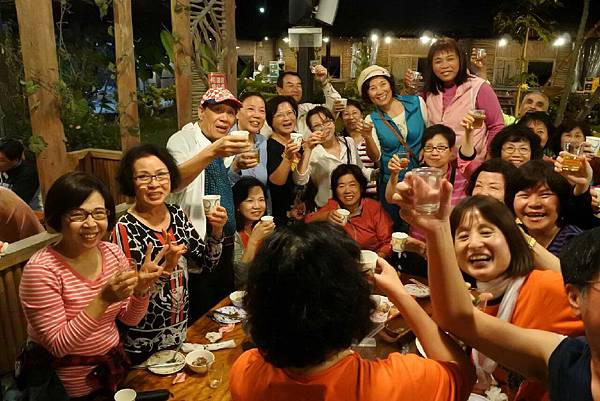 岩灣餐廳以健康餐點及原住民創意料理為特色,在台東小有名氣。在建築上,餐廳四周採用住民傳統的竹子和茅草屋頂搭建而成,中間有個露天的表演廣場,假日客人較多時會有原住民舞蹈和盪鞦韆表演。我們50人分成五桌,酒足飯飽後,大夥兒興致高昂,除了祝賀十月份生日的壽星榮蘭生日快樂,大家還圍起圓圈互相舉杯祝賀,甚至繞場高歌『來去台東』,興奮之情溢於言表,好朋友相聚是難能可貴的,活在當下, 樂在其中,儘情享受生命的美好吧!