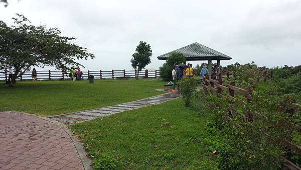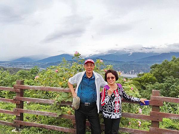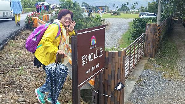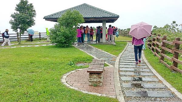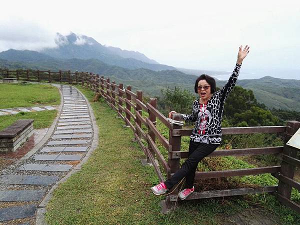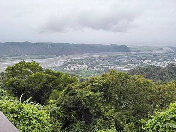沿著台東縱谷的197號公路走,富源觀景台就在大約56公里處。觀景台一如其名,它就是一個觀看風景的地方。我們從停車場右側的小山坡登上101高地,就可抵達由木棧平台、綠草坪和涼亭所構成的觀景台。360度無障礙的開闊視野,放眼所及盡是東台灣美景,雖然天候不佳,小雨淅瀝淅瀝影響視線,但仍可以眺望東海岸景致和都蘭山,也可以看到卑南溪、普悠瑪大峽各、小黃山和利吉惡地的獨特地理景觀。從另外一個角度可看到錯落有致的民房散落平原之間,導遊老師說,如果天氣晴朗還可以遠望綠島,甚至蘭嶼都可盡收眼底。