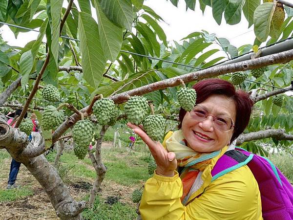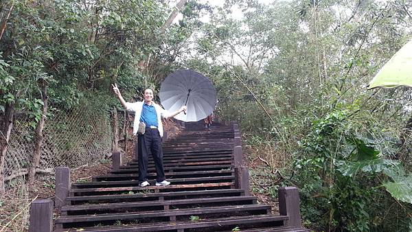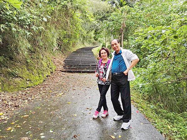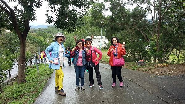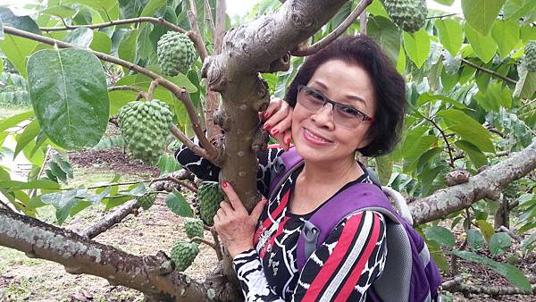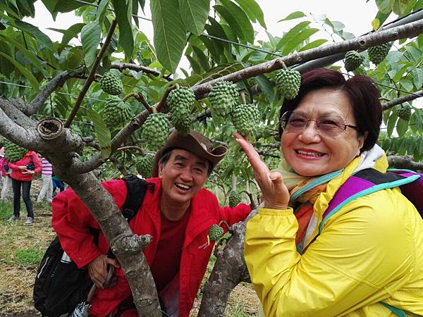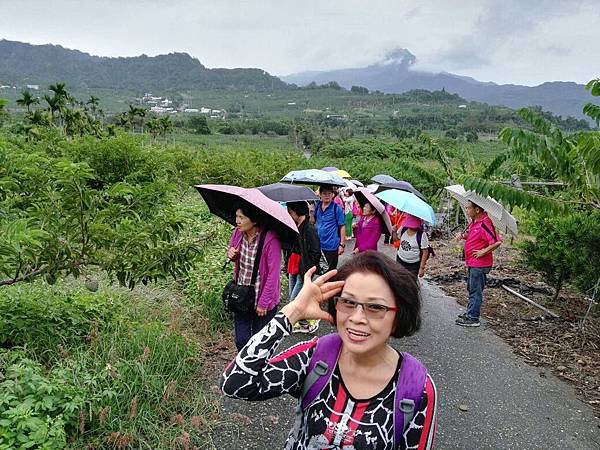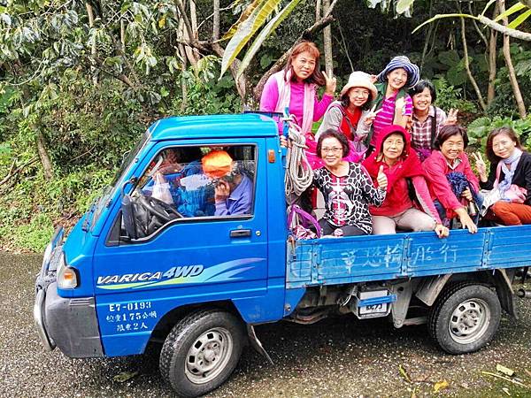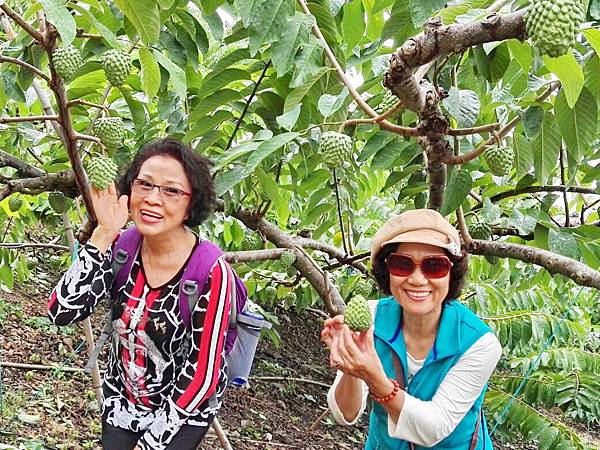 四格山並不高,但因地形陡斜,登山階梯陡長,雖設有共約240個階梯的人行棧道,但走來也並不輕鬆。產業道路兩旁都是整片的鳳梨釋迦和本土釋迦園,看到結實纍纍的果樹,大家都嗨翻了,一陣瘋狂拍照後才發現我們走錯路了。回到正確的登山路徑後,濕滑的路面讓部份人退縮不前,就在多人想折返時,一位正在工寮休息的熱心果農自願用他的四輪傳動載我們到登山口,如此一來便省略了好長一段崎嶇山路,能搭上車的同伴簡直樂不可支。