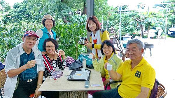 下山後來到卑南文化公園右側的彩虹山丘『達如岸咖啡園』品嚐有機咖啡。『達如岸』在卑南族語裡是工寮的意思,園主李先生夫婦為了能讓自己的咖啡往精品咖啡路線邁進,不但努力學習關於咖啡的一切知識,還精心栽植和烘焙高品質咖啡豆,甚至到最後的調煮和品嚐,每一個步驟都有它獨到的見解,讓咖啡的口感不但溫潤順口,且味道更豐富而飽滿。在種植管理方面,他們堅持不灑農藥、採用人工除草等管理方式,此外,嚴選完整飽滿的豆子,在形狀和色澤及香氣方面的要求都相當嚴格,加上台東獨特的海洋氣候和東北季風,使得達如岸的咖啡豆得到MOA有機認證的標準。那麼好的咖啡豈能輕易錯過,於是在咖啡樹環繞的咖啡園裡,大夥兒人手一杯,滿足全寫在笑臉上。