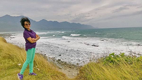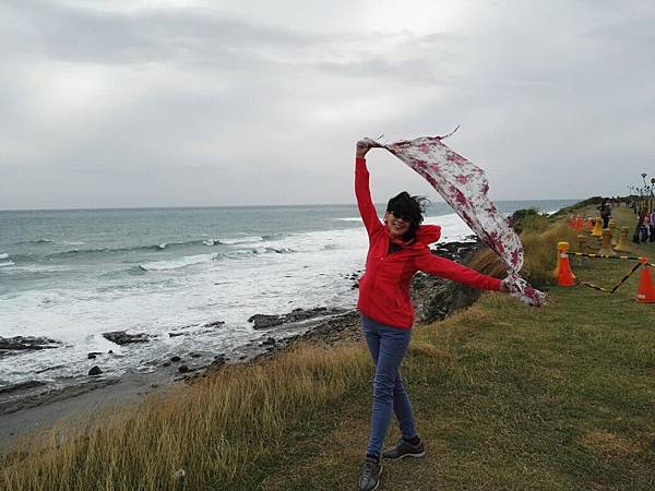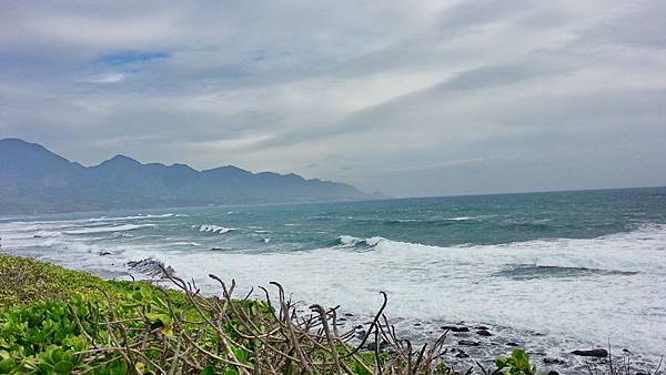 今天的天氣不錯,只是東北季風吹得很囂張,一覽無盡的遼闊太平洋,雲朵流動於山海間,強風翻起白浪相互追逐,景觀美得讓我心動不已。