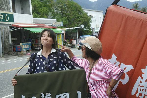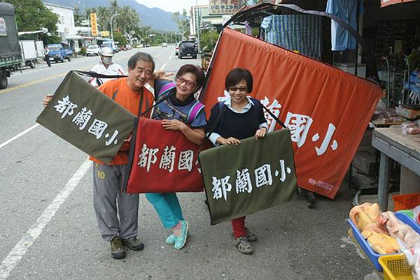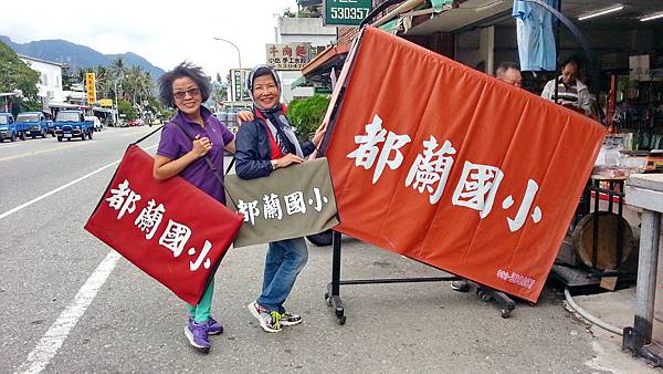 9:30分離開加路蘭來到東河鄉的大街上,原來是為了買周美菁背過的都蘭國小書包。其實書包本身並無特色,只因名人的加持便有人莫名其妙跟進,真是不可思議,倒是背個20倍大的大書包來照個相還頗具趣味性的,一小時後,我們的行腳來到東管處。