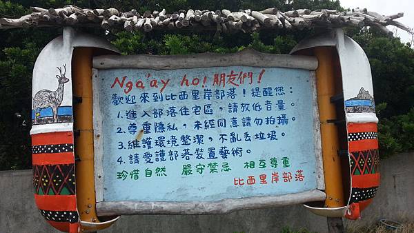 我們於2:20分揮別了三仙台前往緊鄰的『比西里岸』白守蓮部落。比西里岸Pisirian是阿美族語〝放羊〞的意思,這裡也被稱為放羊的故鄉。白守蓮原本只是一個平凡的海灣小漁村,隨著時代變遷,部落現在已不見羊群,居民也不多。有感於部落年青人口逐漸外流,部落族群與一些藝術家們齊心努力推動社區營造,發掘部落新亮點和特色,並與著名『幾米』合作打造出一個充滿藝術文化氣息的比西里岸,希望藉此能帶動部落觀光資源,找回失去的人潮。