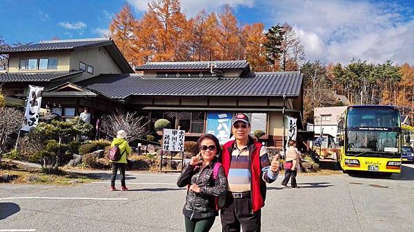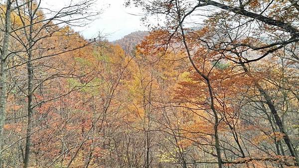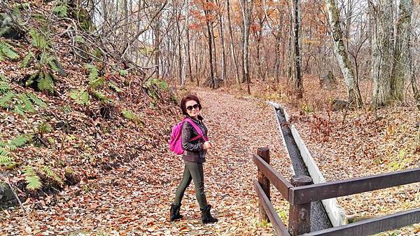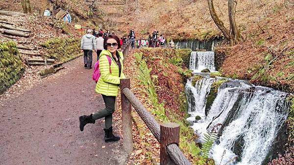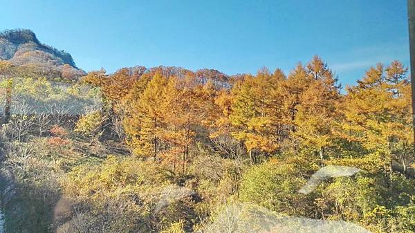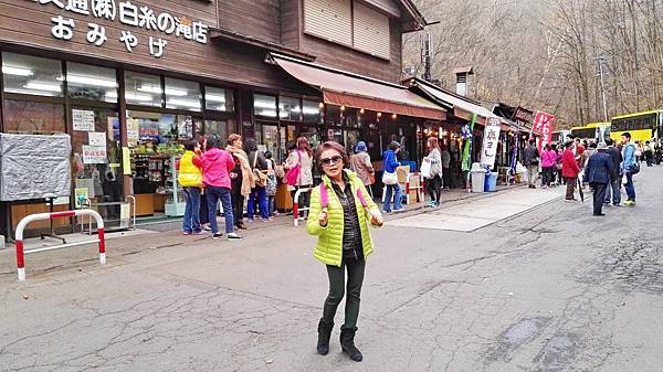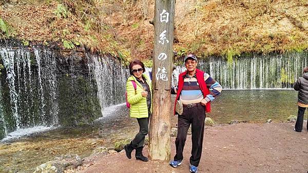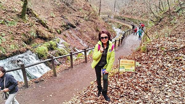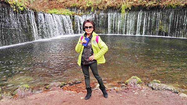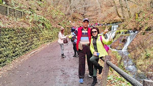 早餐吃得很豐富,日式西式餐食混搭,什麼東西都想嚐一口,無怪乎每次旅行後體重都會增加一些。8:00點準時上車,專車蜿蜒在一片金黄色樹林包圍著的山路上,半小時後抵達輕井澤北邊的白系瀑布。