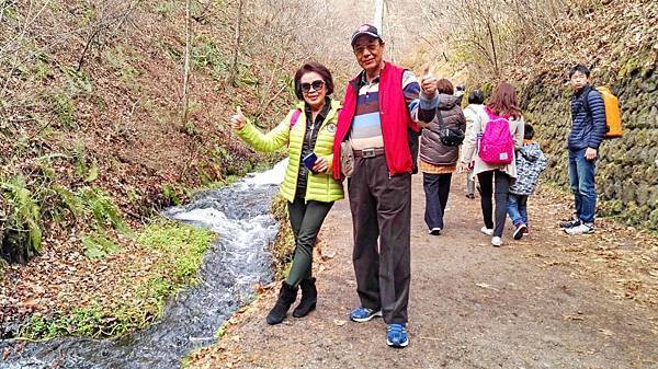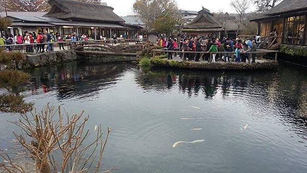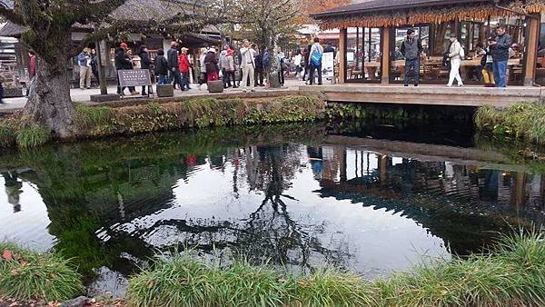 專車離開萌木之村時已是下午2點了,2小時後來到位於山梨縣忍野村的湧泉群~忍野八海。八海也就是八個水池的意思,位於富士山山麓的忍野村奇景已被列為世界文化遺產,並入選為日本百選之名水及百景之一。富士山融化的雪水流經地層經過80年的過濾,成為了忍野村8個水池的自滲出湧泉水,其清澈剔透程度可想而知。如遇到晴朗好天氣,從忍野八海可眺望富士山,甚至從某個角度可以看到富士山倒映在水池上,我們抵達忍野八海時早已是日落黄昏時,山邊起霧,不但看不到富士山,也看不到倒影,實在可惜啊!