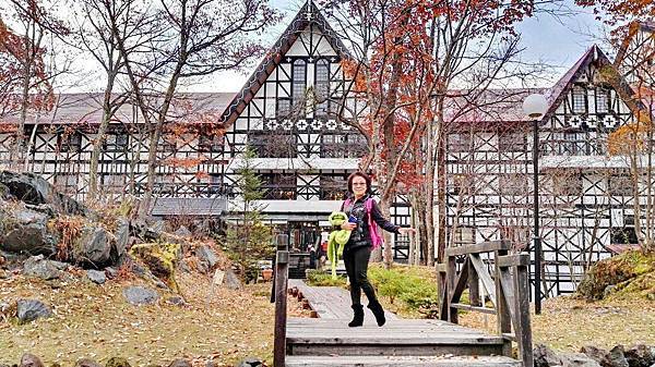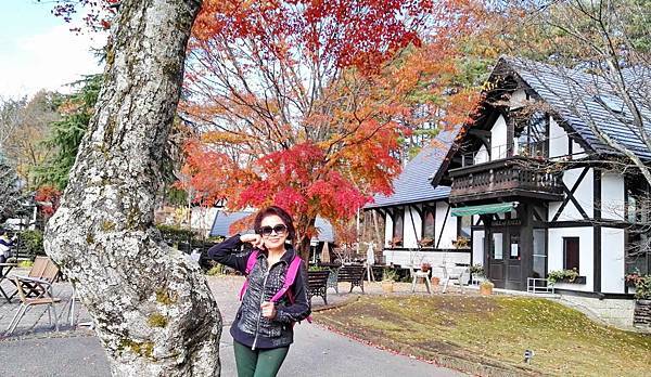 清晨迫不及待地步出飯店外賞景,冷空氣在深秋的早晨中帶著些許枯葉的乾香氣味,位於高海拔的輕井澤,紅葉就是這個季節最美麗的風景了。繞著幅員廣大的Green Plaza 飯店走一圈,英式城堡式風格的飯店建築在一片自然景致中顯得格外搶眼,黑白色窗格建築搭配鮮紅色三角屋簷在晨光中閃耀著亮眼的光芒,大自然輕井澤,在吸吐之間,芬芳而迷人。這片景致之美是大片原野森林環繞,走入森林小徑,秋的簫瑟感濃得化不開,清新空氣裡,濃郁芬多精讓每一口呼吸都像活化身上細胞一樣,輕井澤是我這一次旅行中最戀戀不忘的地方。