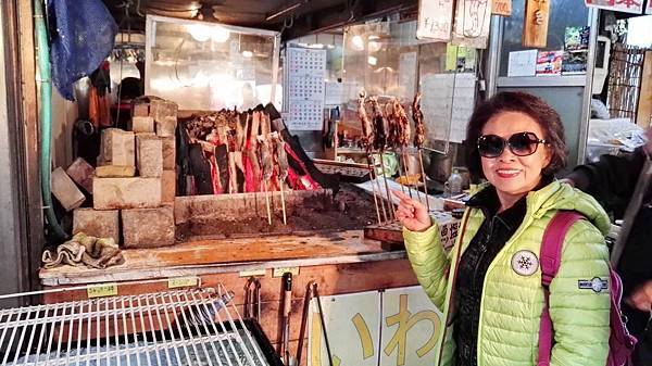 來到忍野八海,還可以逛逛一旁的商家,吉田推薦這裡的必吃美食是泉水豆腐和海鮮卷。利用富士山湧出的泉水製作的豆腐加上一些味噌醬,日本味十足,另外整串的魚板海鮮卷經油炸,吃起來鮮香味美,還有現烤草餅,各種醃漬物和土產等等。景區有兩處湧出富士山泉水的地方,據說喝了可健康並延年益壽,我們入境隨俗也喝了一些並用水壺裝回飯店飲用。