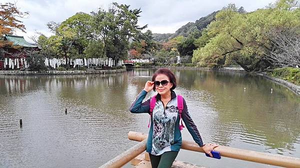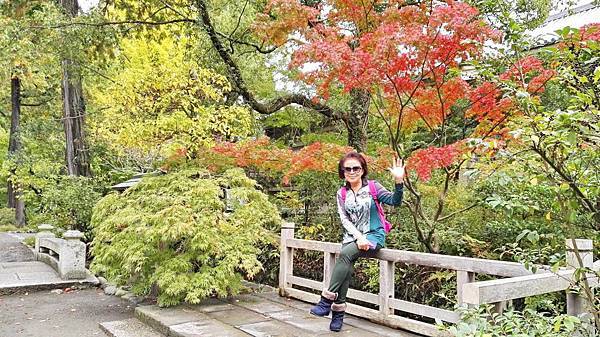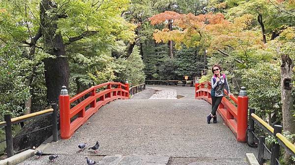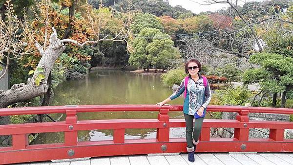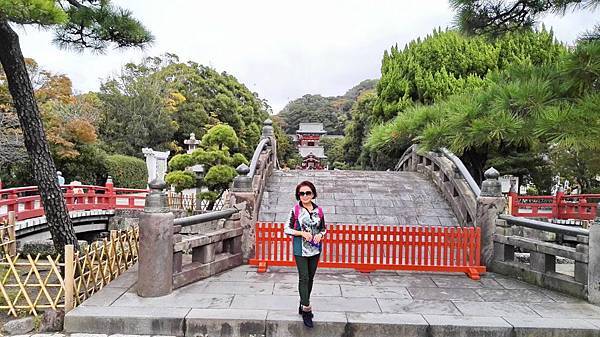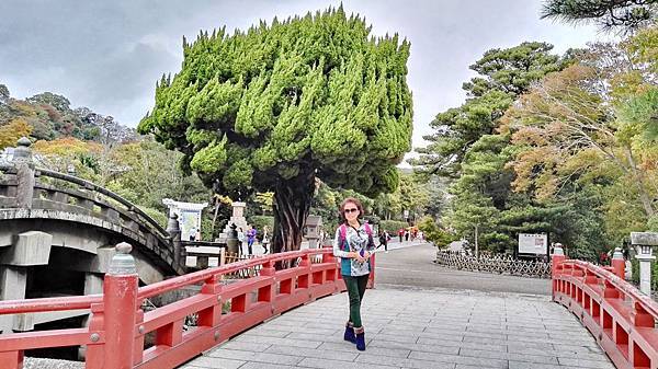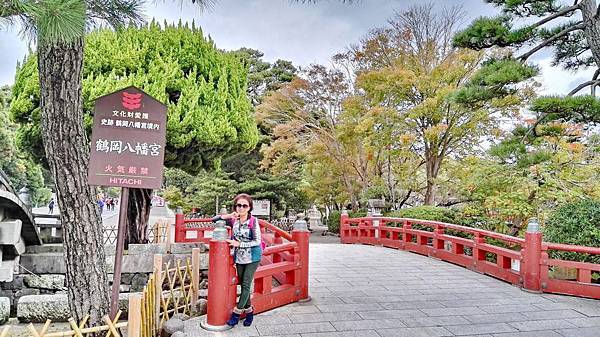 鶴岡八幡宮是一座朱紅色的精美神社,在銀杏和紅葉環繞下,它像一座色彩鮮麗的藝術品,宏偉、莊嚴、雅緻,不管是近看或遠觀都有其迷人之處。參觀了正殿,再漫步於神社右側的林園中,這裡也有幾座小小神社座落在樹林中,美麗的日式拱橋,三兩棵尚未來得及變色的銀杏樹和紅葉點綴,整座林園顯得靜謐典雅,風吹林間,落葉紛紛,更增添了詩情與畫意。