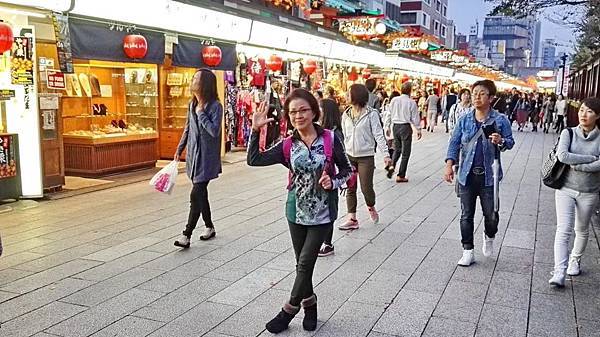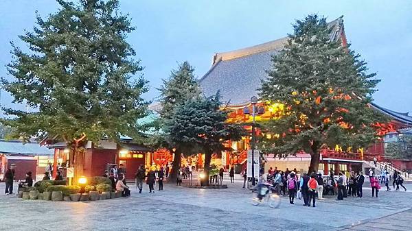 從本堂往前走,穿過小舟町就是非常熱鬧的仲見世商店街,兩旁販賣各式各樣的日式商品和小吃等等,逛街花了太多時間,入夜了才發現時間不夠,我們來不及走到雷門看那盞超級大燈籠,雖留下一點點遺憾,或許也可作為下次重遊淺草寺的藉口。