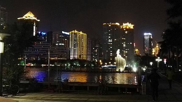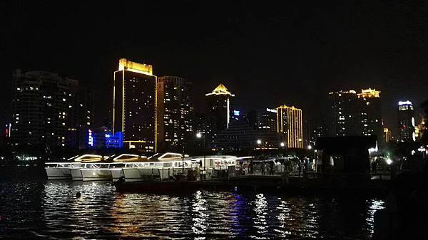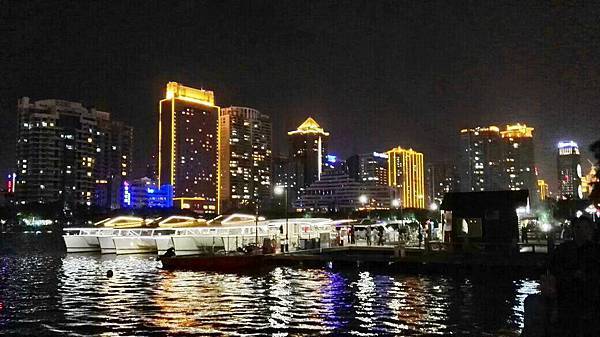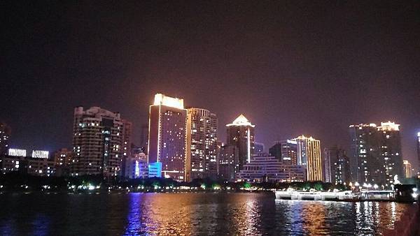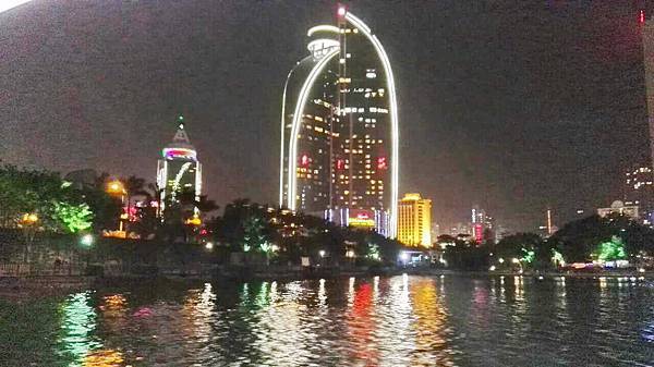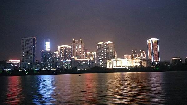 傍晚時分,購物行程終於告一段落,晚餐在『福榮塘夜排檔』解决,餐後還安排了自費的遊湖行程~篔簹雅遊。篔簹湖又稱為西港,是一個人工湖泊,面積1.7平方公里,由於位在廈門市區,湖岸皆是一棟接一棟的華麗大樓,加上夜晚彩色繽紛的霓紅燈閃爍,形成一幅繁榮現代都市景象,廈門真是發展神速啊!