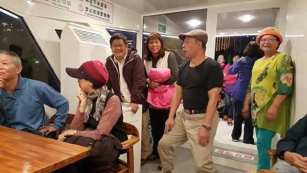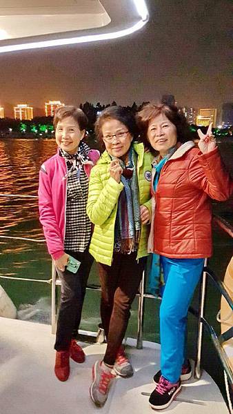 遊湖時間一小時,雅遊船大致上相當舒適也乾淨,船上提供KTV歡唱,愛唱歌的拿起麥克風一首接一首,喜歡搞笑的把大夥兒逗得樂不可支,您亦可在船欄邊吹吹風或欣賞美麗的夜景。夜晚光線不足,拍照的效果不佳,但愛拍照的依舊是拍個不停。
