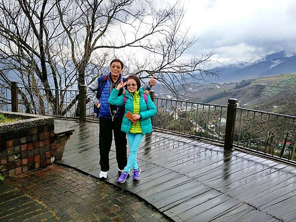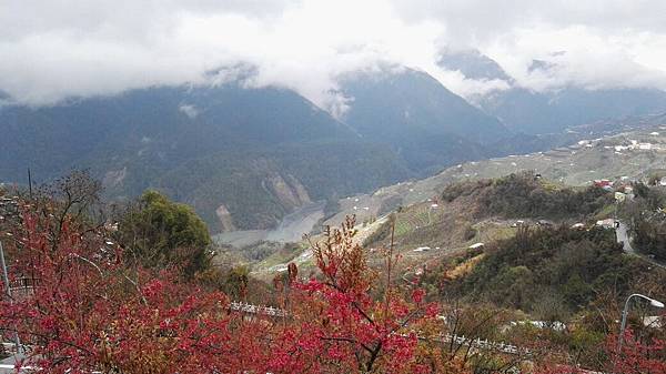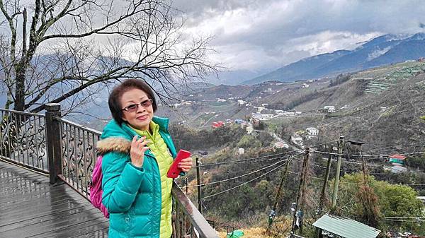 昨夜裡下了傾盆大雨,天亮時雨停了,大家渴望的陽光還是沒露臉,雖然6度的低溫冷颼颼的,我還是習慣早起伸展一下筋骨。早餐後,在賓館前方的平台上遠眺,清晨,雨後的梨山空氣更加清新,豐富的水氣和裊繞整個山頭的雲霧將梨山重重包圍,將梨山幻化成一幅變化萬千的山水畫,雲霧中詭譎的山巒起起伏伏,層層疊疊,山脈雲霧繚繞,山景幽幽。遠眺高山是一種美好的視覺享受,站立平台上就能輕鬆一覽雄偉山系,和眼前農場的田園景觀相輔相成,構成一幅景緻宜人的畫面。