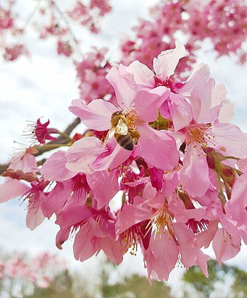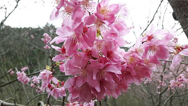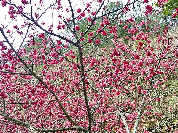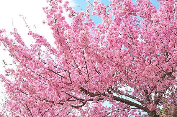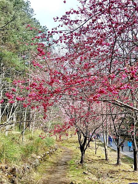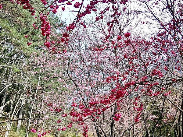 再度來武陵農場賞櫻,從進入農場的入口公園開始,便見桃紅色櫻花迎面而來,花簇壓低枝條沿途綻放,熟悉美景映入眼簾,讓人心情雀躍不已。賞櫻路線從桃子林為起點,附近的山櫻已接近尾聲,但沿路走來,密集種植的紅粉佳人倒是花開燦爛,除了紅粉佳人,也有一些晚凋的山櫻及八重櫻,粉艷花色格外帶有浪漫和夢幻氣息,再往深處走,轉身處又有大片花樹乍現,讓人目不暇給。