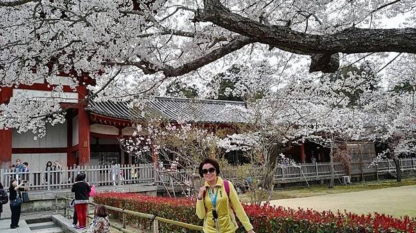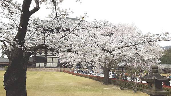 參觀完東大寺,再繞到寺外庭園走一遭,諾大的奈良公園內,盛開的大片染井吉野櫻美得耀眼,微風輕吹櫻飛雪,美麗浪漫情景令人賞心悅目。