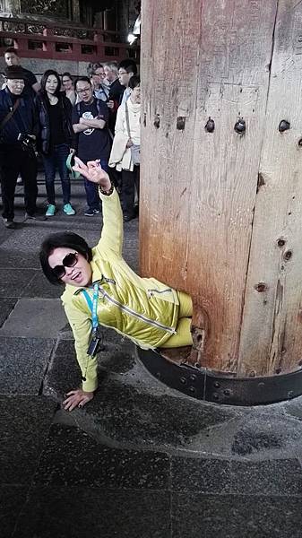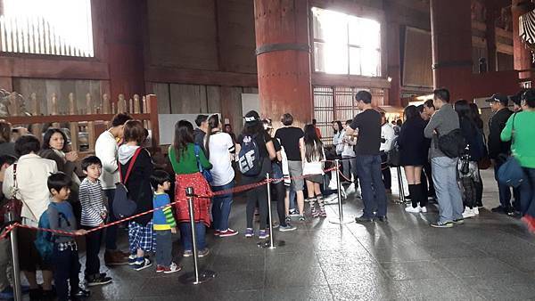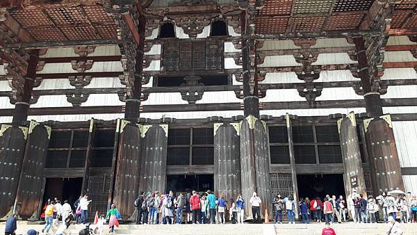 奈良東大寺建於743年,距今約有一千二百餘年歷史。1998年被列為世界文化遺產,因為建造當時建在首都平城京以東,所以被稱作東大寺。東大寺是世界級木造建築,寺內粗大的原木樑柱令人怔懾,其中有一根有個肩膀寬的洞,稱為〝智慧之洞〞,遊客爭相爬過,據說可增長智慧及達成心願,假如你認為自已夠瘦能穿過智慧洞就不防試試,千萬別被卡住才好。我是穿過去了,坦白說有點難度,因為太多人爬過,太滑了!