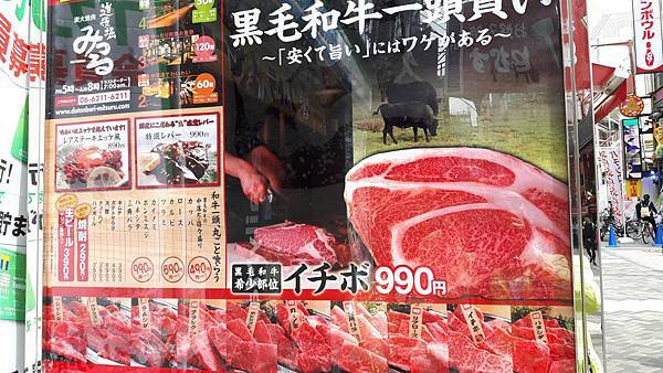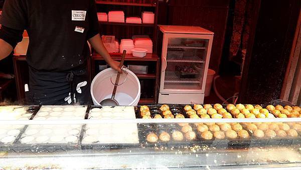 走逛了2小時,肚子餓了就開始注意商店街的小吃,章魚燒是關西料理、大阪的國民美食,攤位前總是排著長龍,熱乎乎的美食從來不寂寞,我們不愛排隊等候,於是去吃黑毛和牛燒烤,再到咖啡吧小歇。