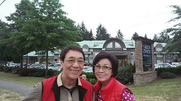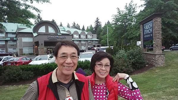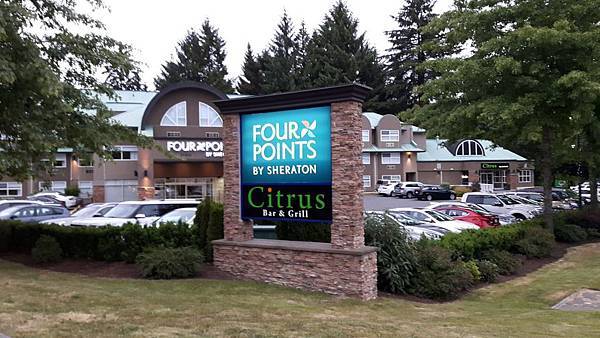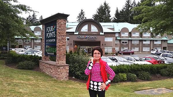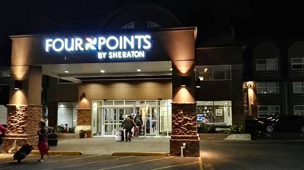 一般飛往美加地區的航班都安排在午夜時居多,晚間9:20分集合二航廈,搭乘中華CI032班機,但因故延誤45分,只好到貴賓室等候至凌晨12:00起飛,抵達溫哥華YVR機場是當地時間晚上7:30分。飛行時間11小時,溫哥華和台北時差慢15小時。經過簡單的海關手續,隨即入住位於Surry的喜來登Four Points Hotel。在機上沒能睡好,現在趕緊來補眠。