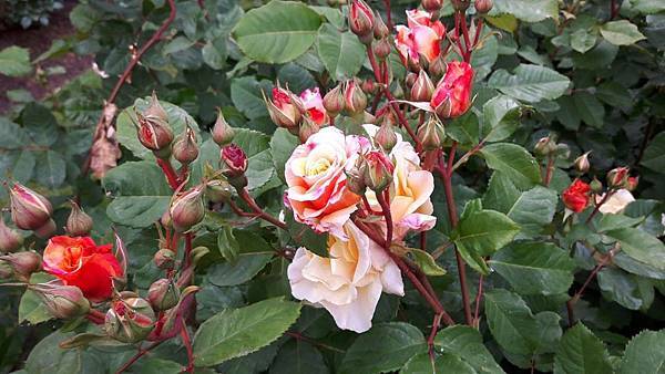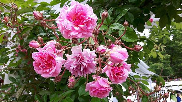 繼續往前行便是布查德花園內赫赫有名的玫瑰園了。可惜!期待中的玫瑰花海並沒出現,只有零零落落的東一朵,西一撮的,心中的失望可想而知,但每株玫瑰樹上都結滿數不清的花苞正含苞待放,相信半個月後,千萬個花苞同時綻放時,那場面肯定是美不勝收的。意外的是園中到處都盛開了讓人驚艷的牡丹花,那是我意料之外的大收獲,各種不同品種的富貴牡丹賞心悅目之至。