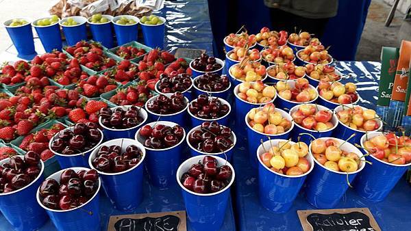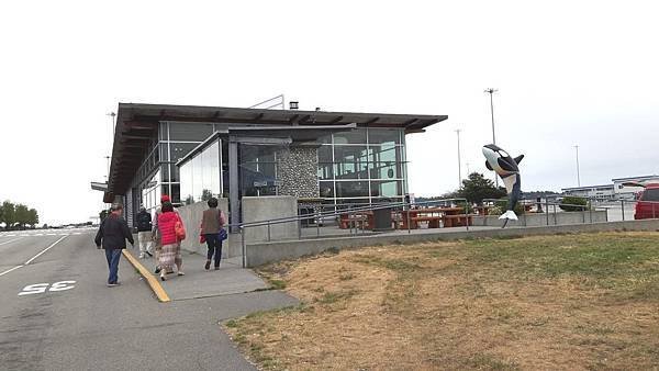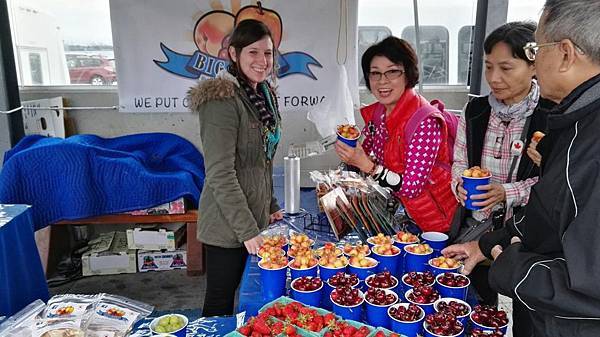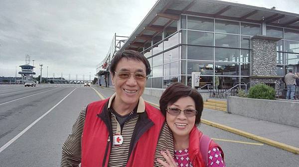經過一夜飽足的睡眠後,今天早上看到每一位團友都神采奕奕,還沒等早上6點的晨喚便早已在飯店的外圍散步了。初春的大溫哥華地區氣溫還是遍低的,攝氏13度C,乾冷的感覺相當舒服。Surrey市屬溫哥華外圍地區,寧靜、空氣也格外清新,飯店前玫瑰花和大紅牡丹漂亮。由於要配合船班前往溫哥華島維多利亞市,今天要早一點出發。6:30分簡單的美式早餐後,7:15分離開,40分鐘車程來到大溫三角洲地區的土瓦生(Tsawwassen Quay)卑詩渡輪(BC Ferries)碼頭排隊。在候船期間,渡輪旁邊的商店可以打發一下時間,這裡有星巴克咖啡、小吃、紀念品店等等,看到戶外有賣水果,二話不說買了兩杯白櫻桃。