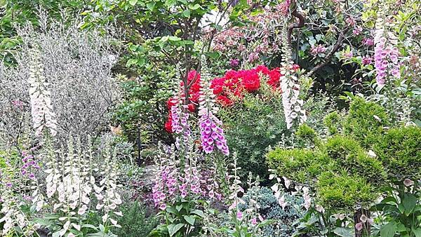 漫步在蜿蜒花徑上,感覺自己像隻花蝴蝶一樣在花叢中穿梭不停,各種顏色的石楠開得最燦爛,其他千百種花卉圍繞著,令人目不暇給,看得心花怒放。園區中心還有一座水不揚波的礦場湖,水生植物正茂盛呢。