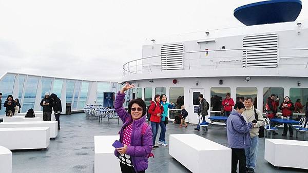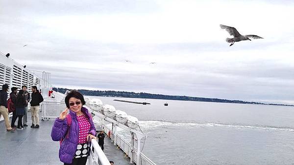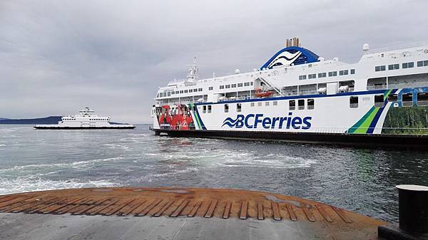 溫哥華島是加拿大西岸最大的島,此台灣小一點點,是個快樂的渡假樂園,兩岸往來就靠卑詩渡輪了。BC渡輪很大,共有6層,人和車可同時搭乘。車子開進船艙後,乘客可以下車登上5-6樓,那兒有販賣商店和飲食,也可走到甲板上吹吹海風、觀景和看海鷗在空中翱翔。渡輪平穩地航行於喬治亞海峽,航行時間約1.5小時,10:30分抵達溫哥華島Swartz Bay,遊覽車上岸後再驅車前往維多利亞。