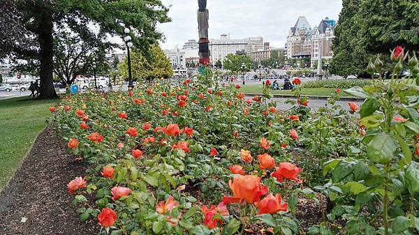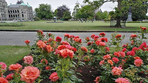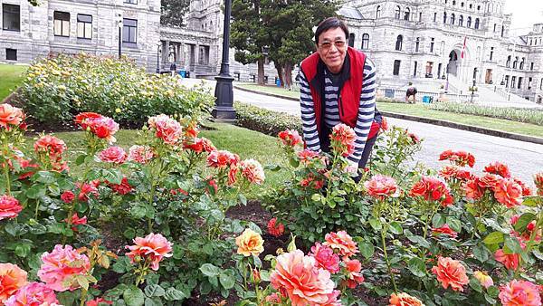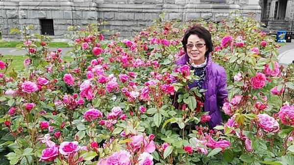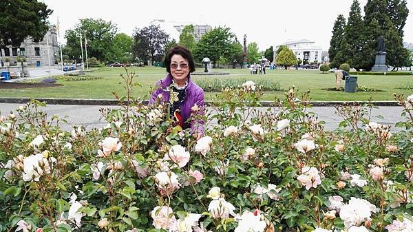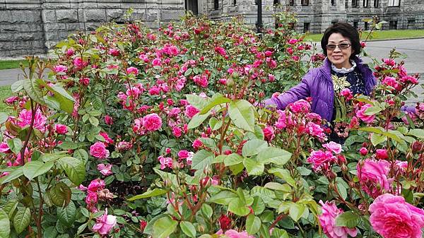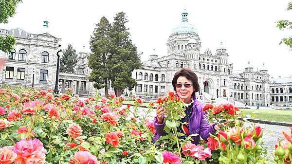 再度繞行到議會大廈,發現這兒有一大片盛開的玫瑰園,把握早餐前短短十分鐘時間拍照再慢跑回飯店,然後悠哉地享受帝王級美味早點,因為住一流飯店、當一天帝后、當然不允許來去匆匆,否則要翻臉啊!這一點領隊了解,所以今天9:30分才出發,40分鐘後到渡輪碼頭,準備搭乘11點的BC渡輪返回溫哥華。